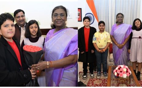 अदम्य, आदविक और वैदिका ने राष्ट्रपति द्रौपदी मुर्मु से की शिष्टाचार भेंट